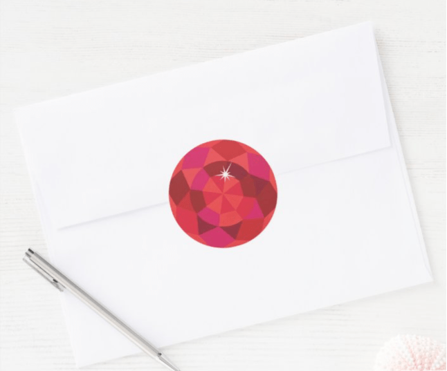 Seven bold-colored precious gemstones grouped overlapping, the topmost in the shape of a heart. Three sparkle stars gleam from the red heart gem. The perfect card for the gemstone and jewelry collector or those who love a little bling in their life. Inside: Blank