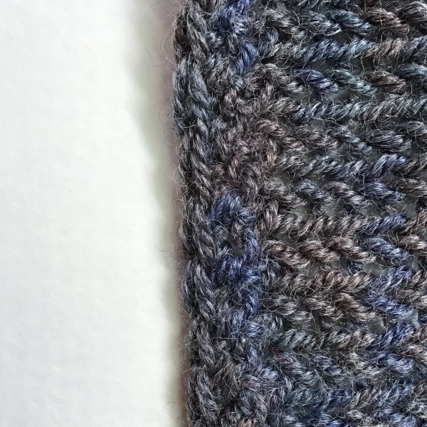 I took the yarn from the hanks and rolled nice stiff balls with center strands that pulled out with even tension. I like to work with silk fiber in the mix because it’s slightly sticky and stays on the needles of the knitting machine. This is the first yarn I have managed to work so tightly on my LK 150. The drape of the knitted Silky Wool is straight without curling problems. I don’t recall any unravelling strands or knots coming undone. Love this yarn!