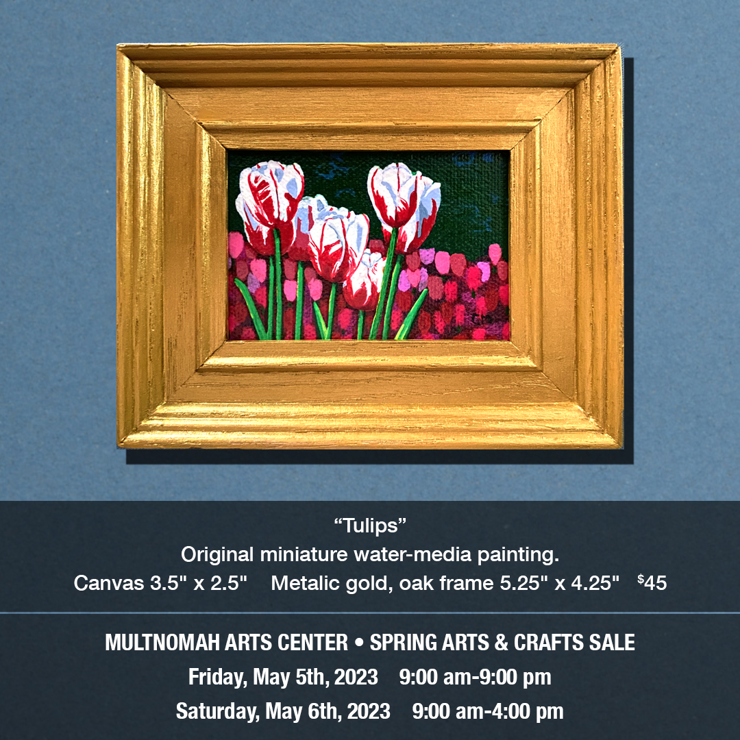 This year I will have both cards and my miniature water-media paintings at the Spring sale.